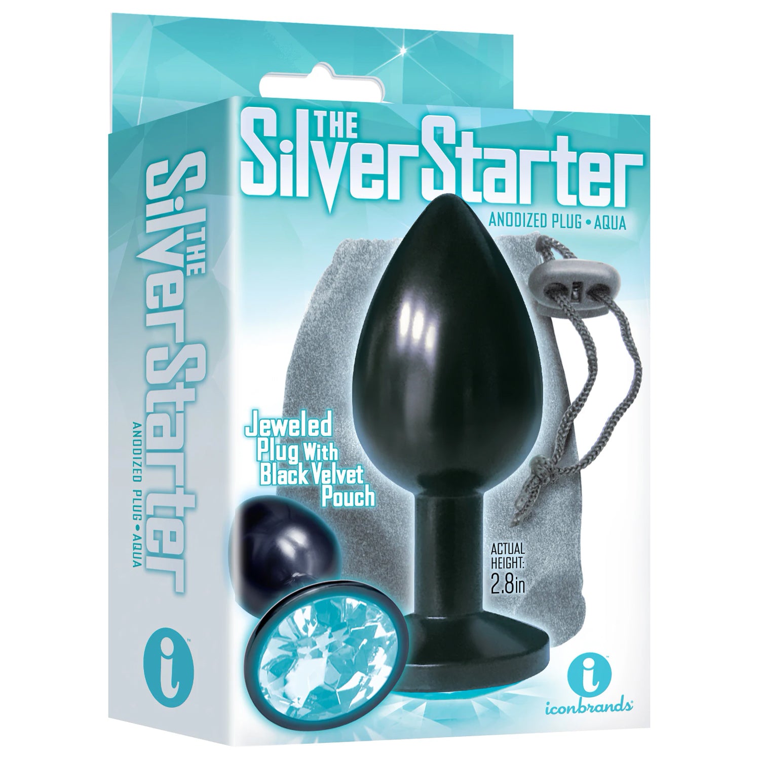 THE 9'S THE SILVER STARTER ANODIZED BEJEWELED STAINLESS STEEL PLUG - AQUA